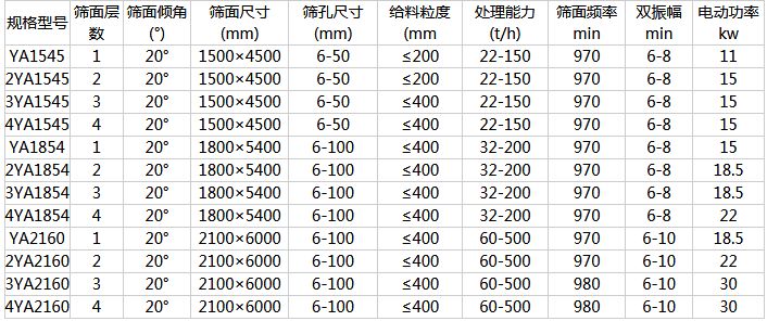 YA圓振動篩廣泛用于礦山、選煤、建材、建筑、電力等部門作物料干式分級用。圓振篩的振動軌跡為圓,因而使篩面上的物料不斷地翻轉(zhuǎn)和松散,具有以下特點(diǎn):